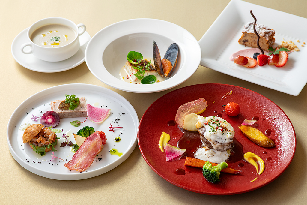 A lunch course recommended for the Holiday Season, featuring a double main of fish and meat dishes. Enjoy this special five-course menu, filled with the charms of Southern Tower Dining, perfect for a meal with loved ones or guests.
