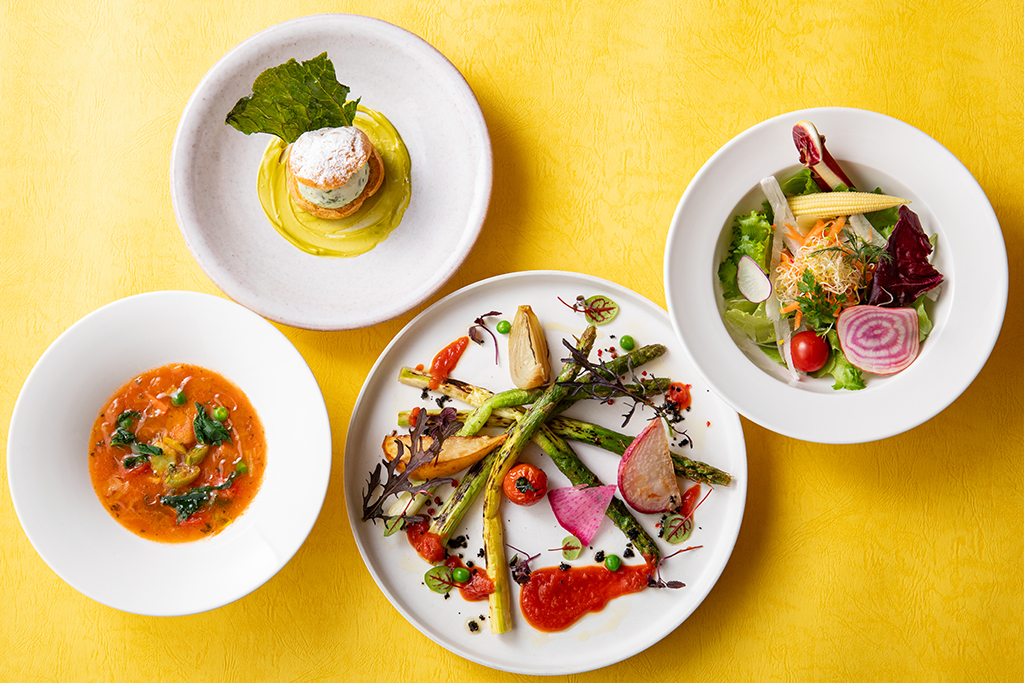 Southern Tower Dining’s exclusive “Veggie Full Course,” features Tokyo-grown vegetables. It is a special course with only vegetables.